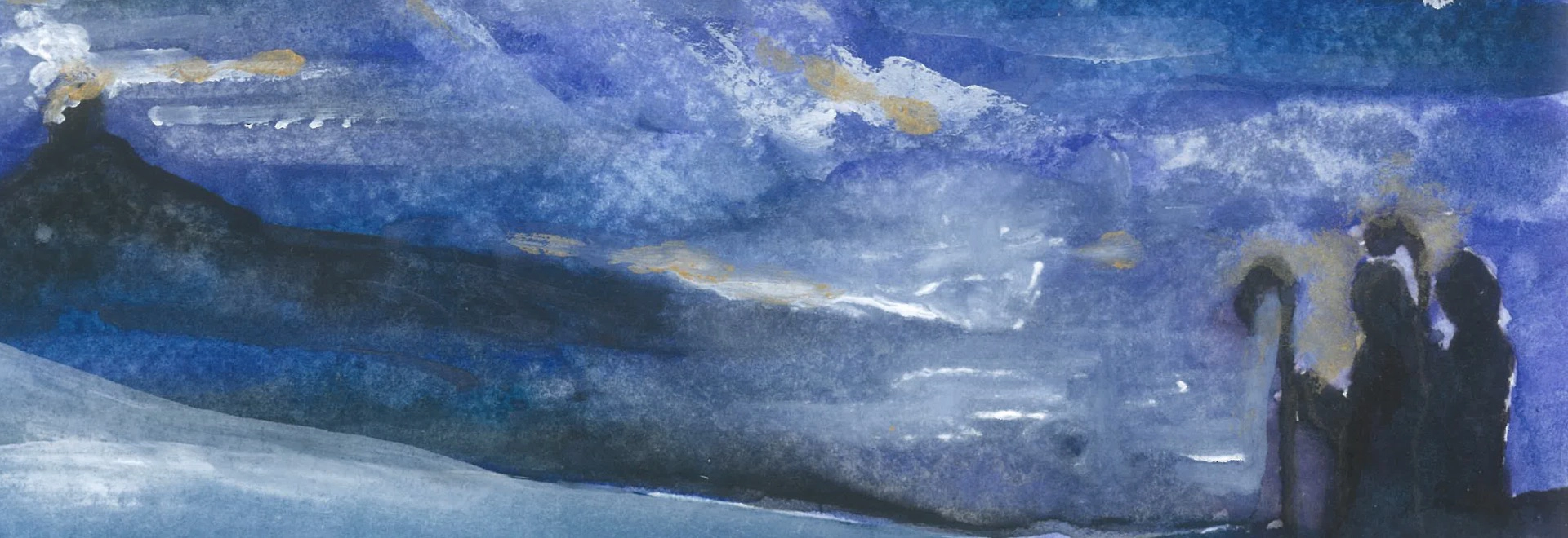 Christmas Card 2 - "Shepherds" - £6 per pack of ten with envelopes + P&P). This evocative "Christmas Night" scene was painted especially for us by artist Jenny Scoones who is a Core Volunteer with the London Churches Refugee Fund.